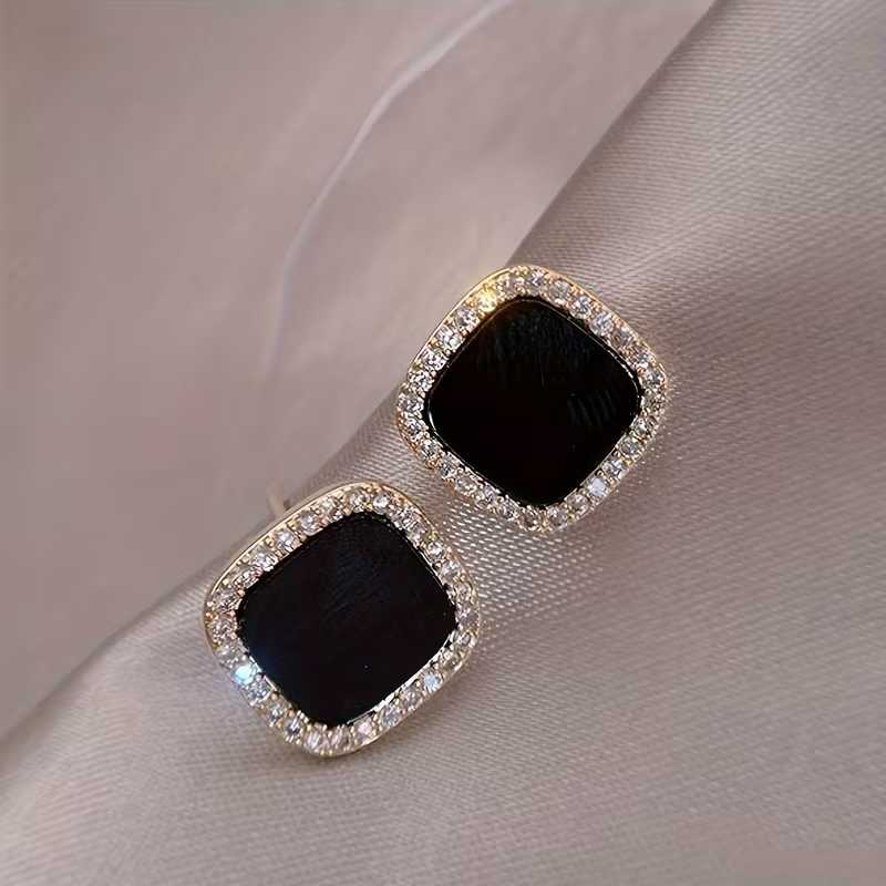 Hot Selling Women’ Square Style Fashionable Stud Earrings Inlaid with Rhinestones, Minimalist And Versatile Earrings for Daily Wear